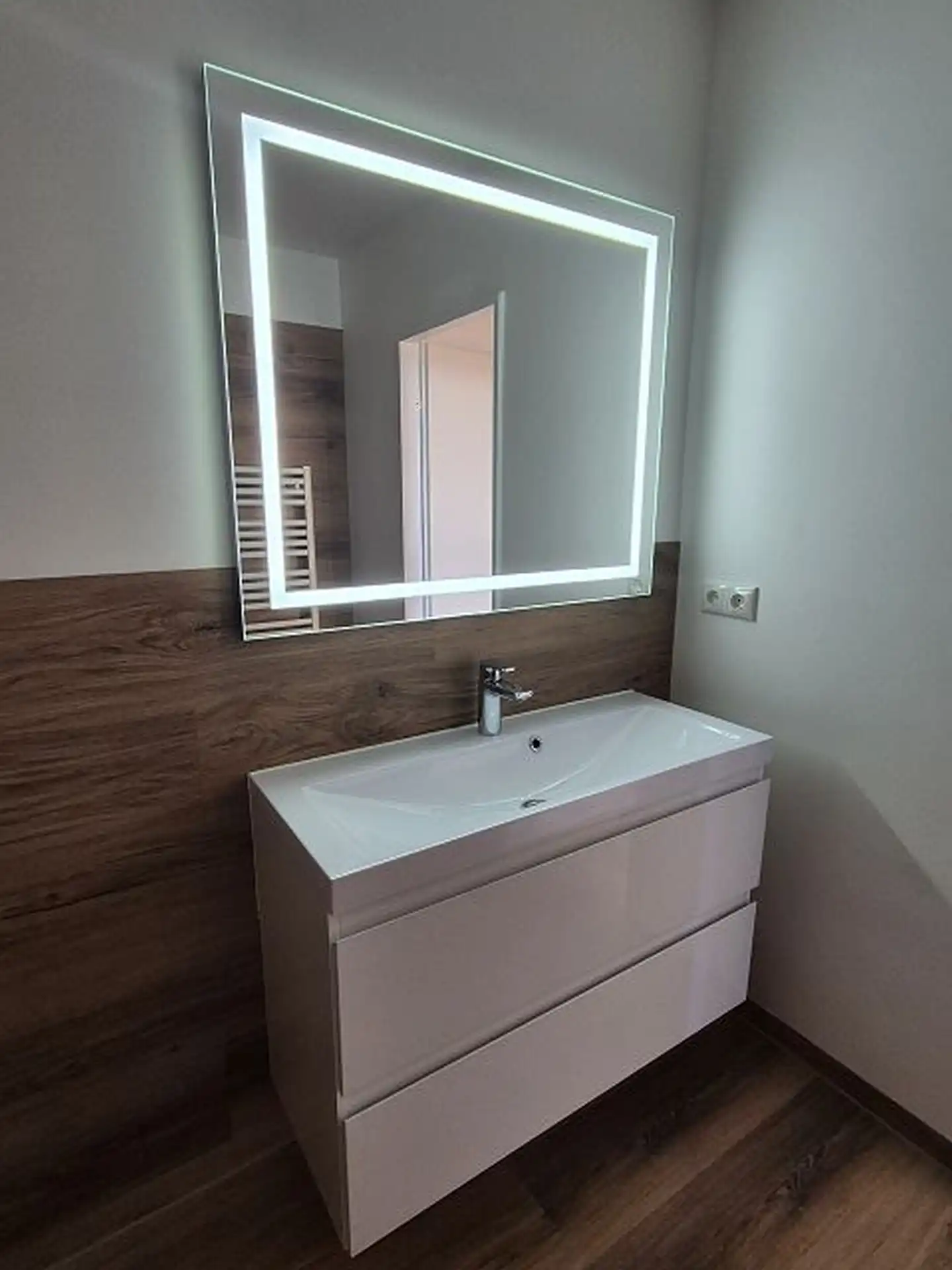 - geräumiges Duschbad mit XXLDusche, Waschtisch und -Unterschrank
